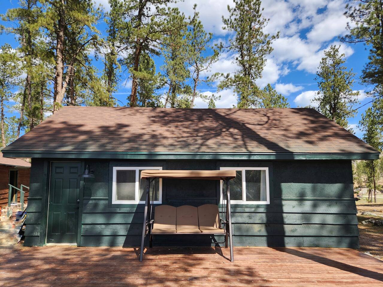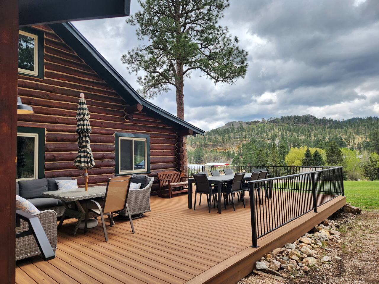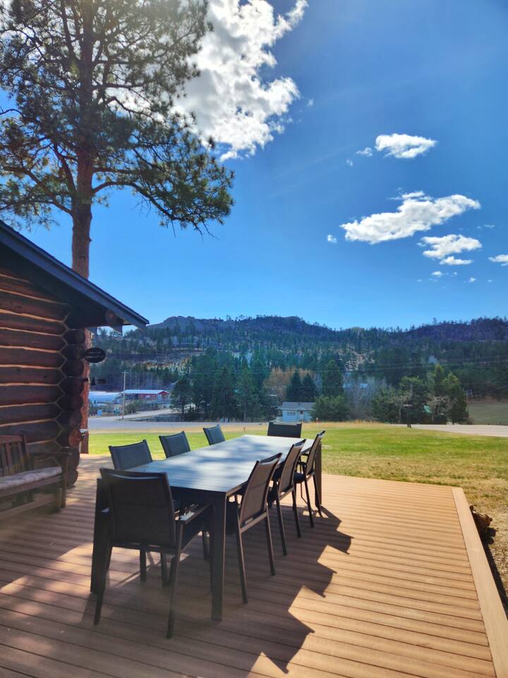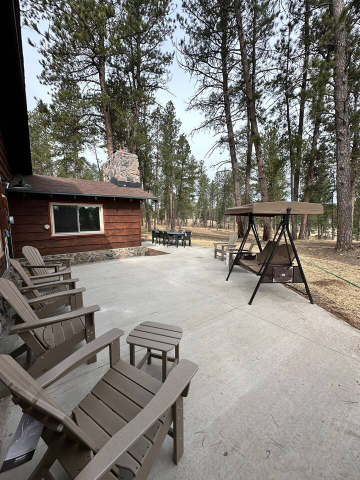 Pine Lodge is your perfect Black Hills getaway—2 mins from Custer State Park and steps from the Mickelson Trail. Completely renovated in 2025, it features a 4-bedroom cabin with full kitchen and 2 full bathrooms, plus a bunkhouse with 4 queen beds, kitchenette, and full bathroom. Enjoy scenic views, a wraparound deck, hot tub, and indoor/outdoor dining. Built in 1935, our lodge has been in the family since 1941—and we’re excited to share it with you!