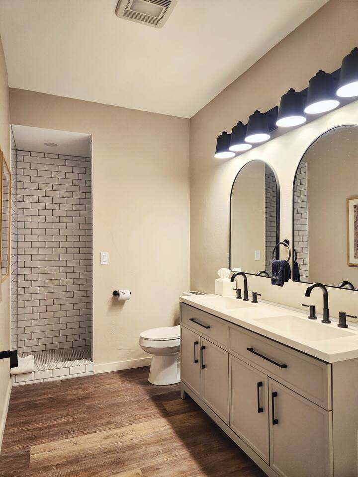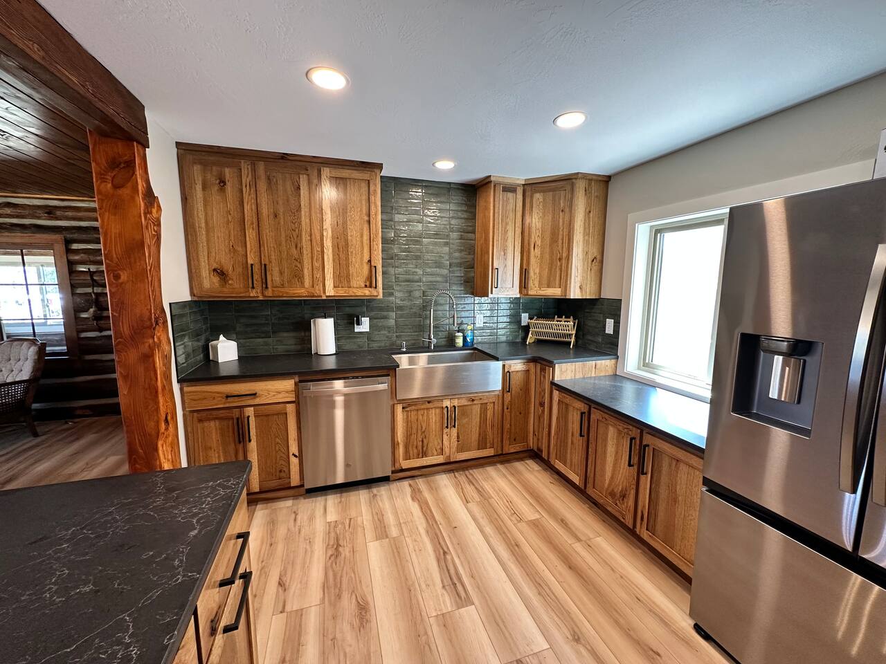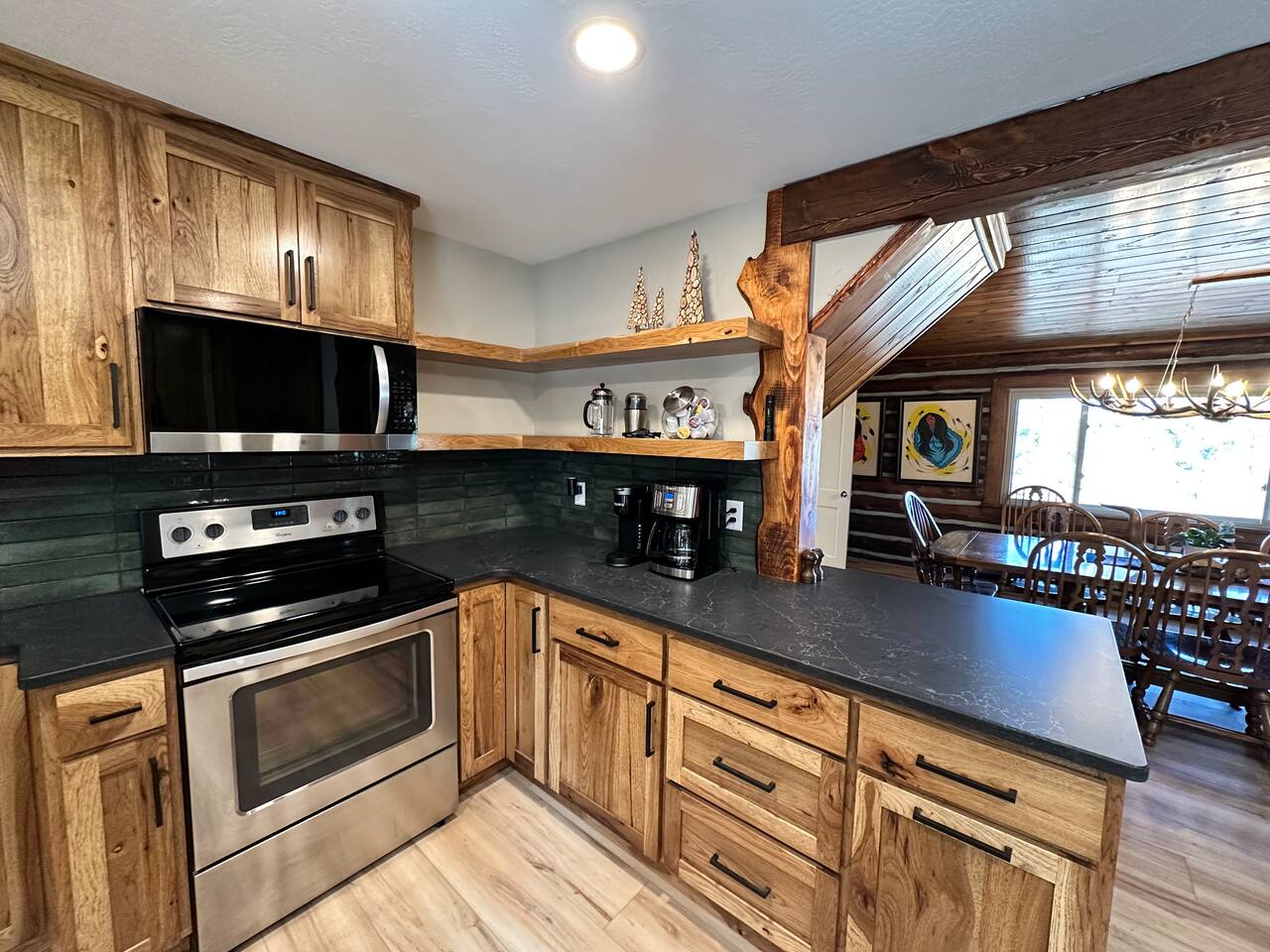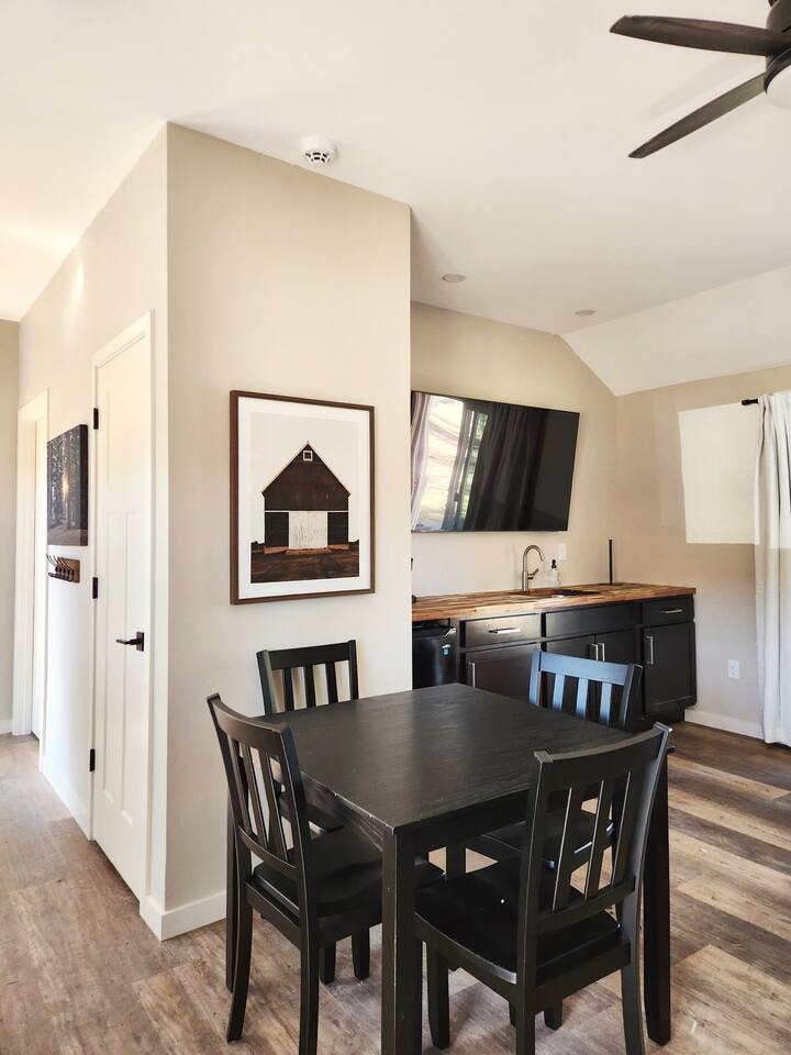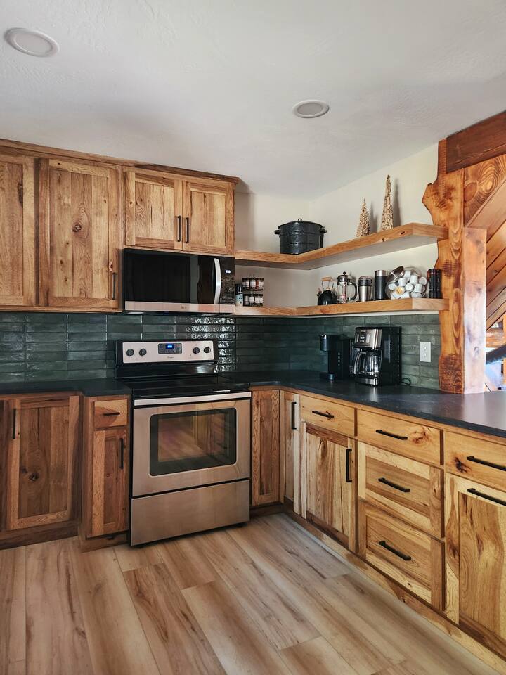 Our 2025-renovated property includes: • Main Cabin: 4 comfortable bedrooms, 2 full bathrooms, and a fully equipped kitchen. • Bunkhouse: 4 queen beds, a kitchenette, and a full bathroom—perfect for larger groups or families.